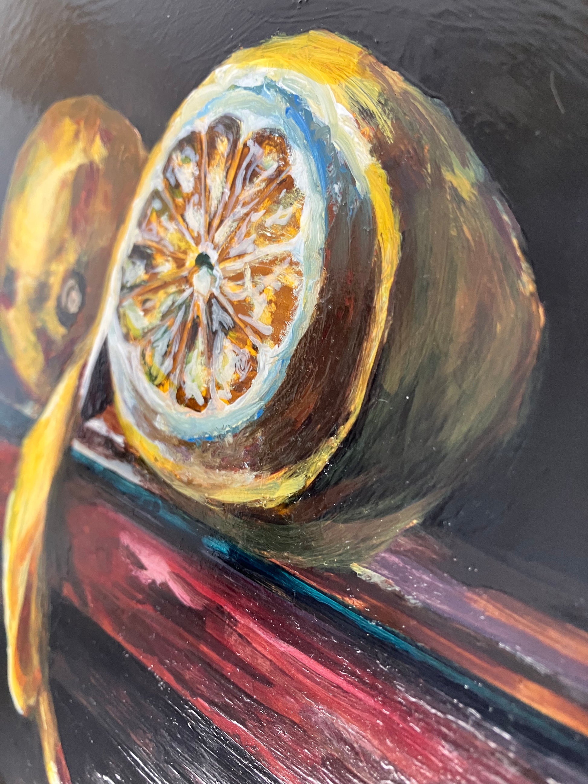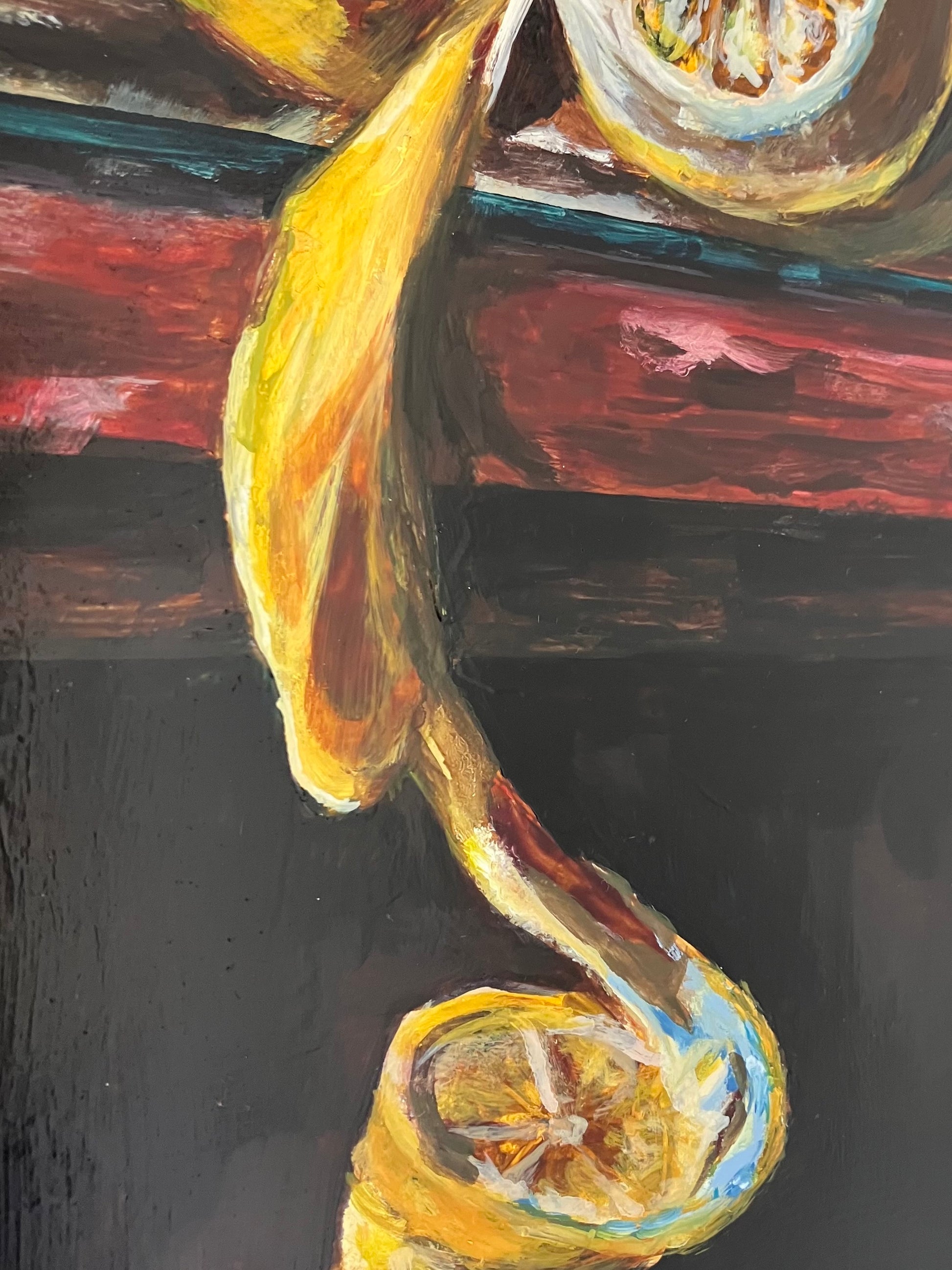 This painting was inspired by memories made in the kitchen with the people I love, relaxing and gathering around fancy cocktails.